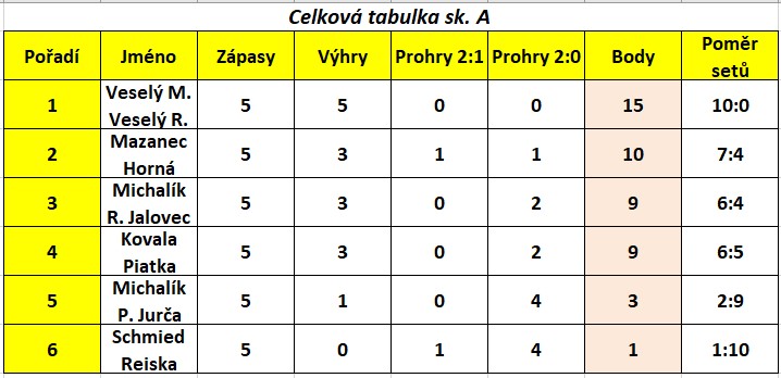 VÝSLEDKY A TABULKY